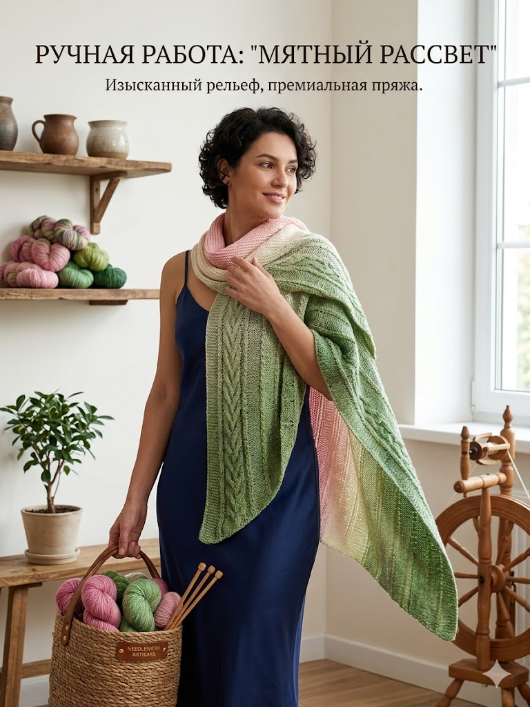 Шаль"Мятный Рассвет"— ручная работа и премиальный состав
