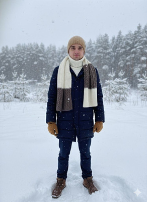Дизайн шарфа вдохновлён скандинавским минимализмом и концепцией hygge — он лаконичен и в то же время тёплый, создавая атмосферу домашнего уюта. Натуральные оттенки и текстура шерсти делают его универсальным аксессуаром, который легко впишется в любой гардероб.