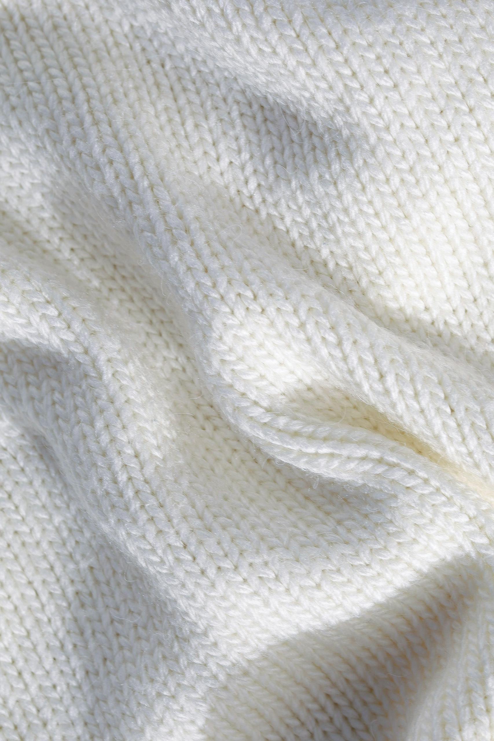 Элегантная белая шаль в полоску станет идеальным дополнением к вашему образу. Эта универсальная вещь подходит как для повседневной носки, так и для особых случаев, благодаря своему стильному дизайну. Легкая и воздушная, она прекрасно защитит от прохлады вне зависимости от сезона.