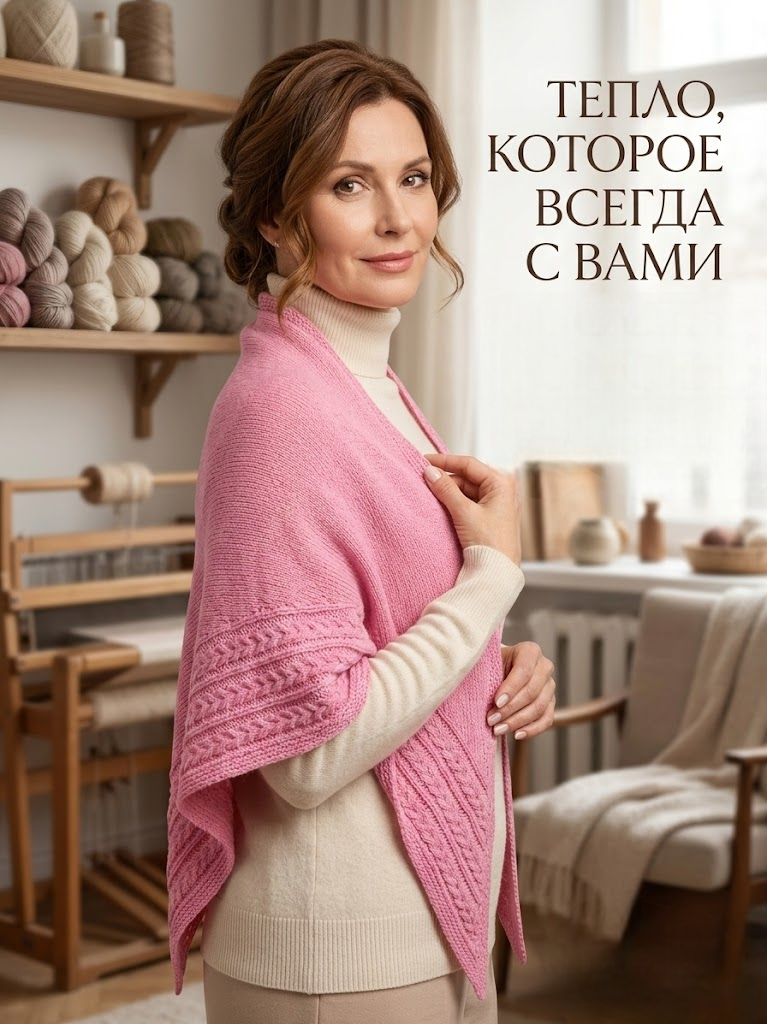 Шаль «Дыхание весны» станет идеальным дополнением к пальто, куртке или даже домашнему образу. Она согреет вас на прогулке по городу или во время уютного чтения в любимом кафе. Цветовая палитра выдержана в нежных розовых тонах, подчёркивающих стиль скандинавского минимализма и создающих атмосферу уюта.