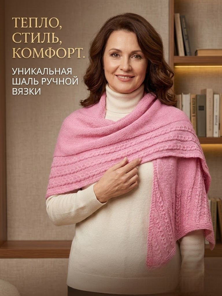 Подарила шаль маме, и она в восторге! Натуральные материалы не вызывают аллергии, а дизайн идеально вписался в интерьер. Чувствуется забота и внимание к деталям в каждом стежке.