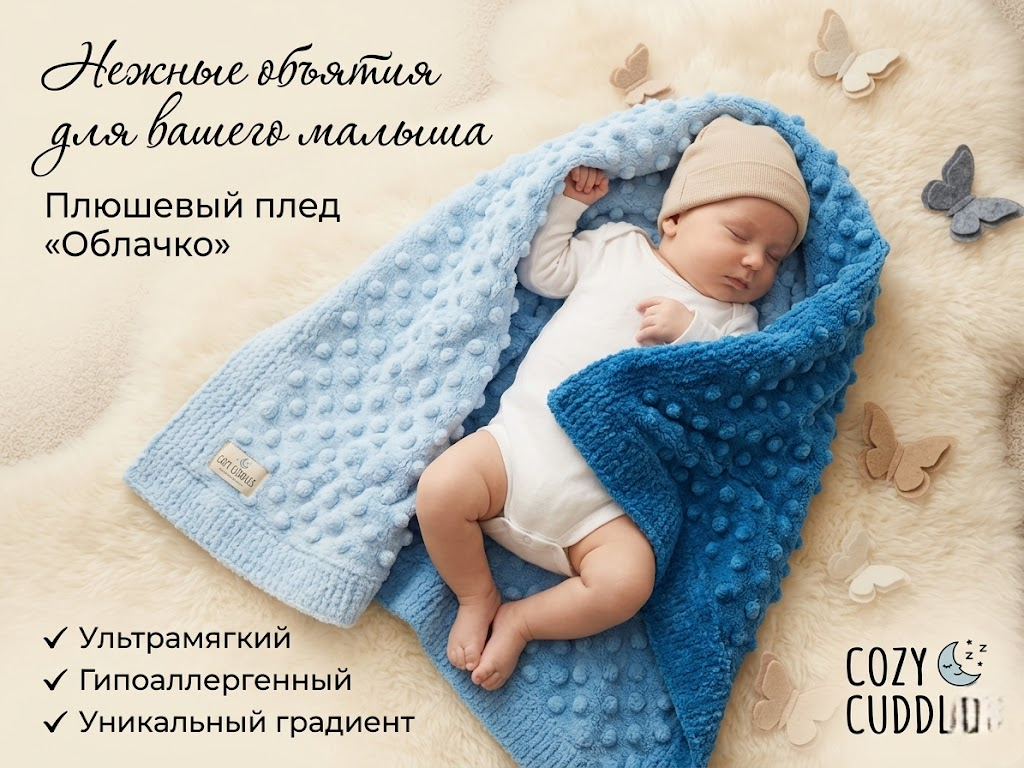 Плед детский плюшевый «Крошка-Уют» — Нежность в каждой петельке