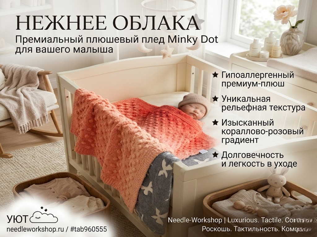 •★ Долговечный и легкий в уходе: Сохраняет свою форму и невероятную мягкость после деликатной стирки. Универсальное использование Плед размером 85х80 см идеально подходит для: •Кроватки младенца.