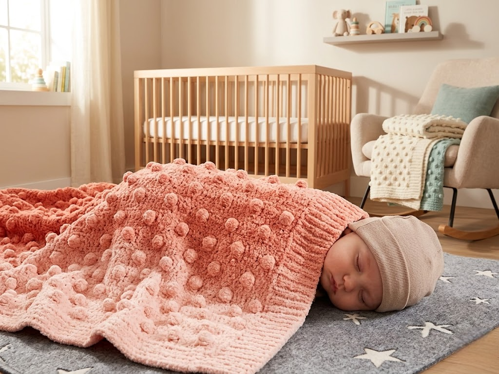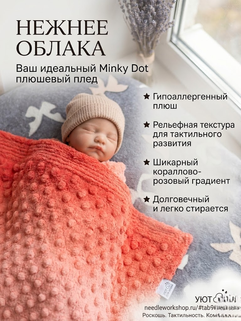 Подарите своему малышу бесконечную нежность и уют с нашим уникальным плюшевым пледом "Солнечный рассвет". Этот изысканный плед в технике minky dot (минки-дот) с мягкими рельефными пупырышками — идеальный выбор для первого одеяла вашего крохи.