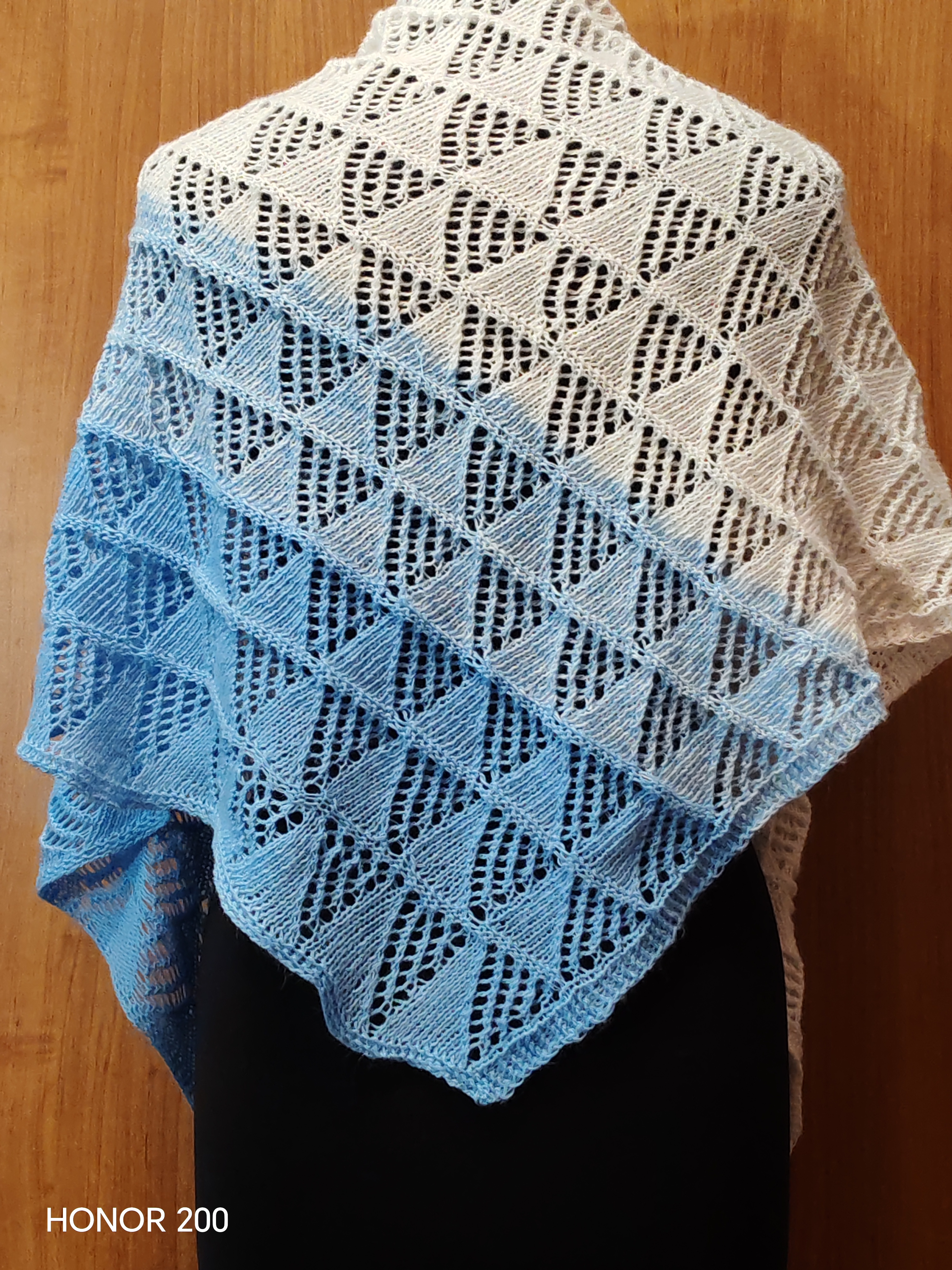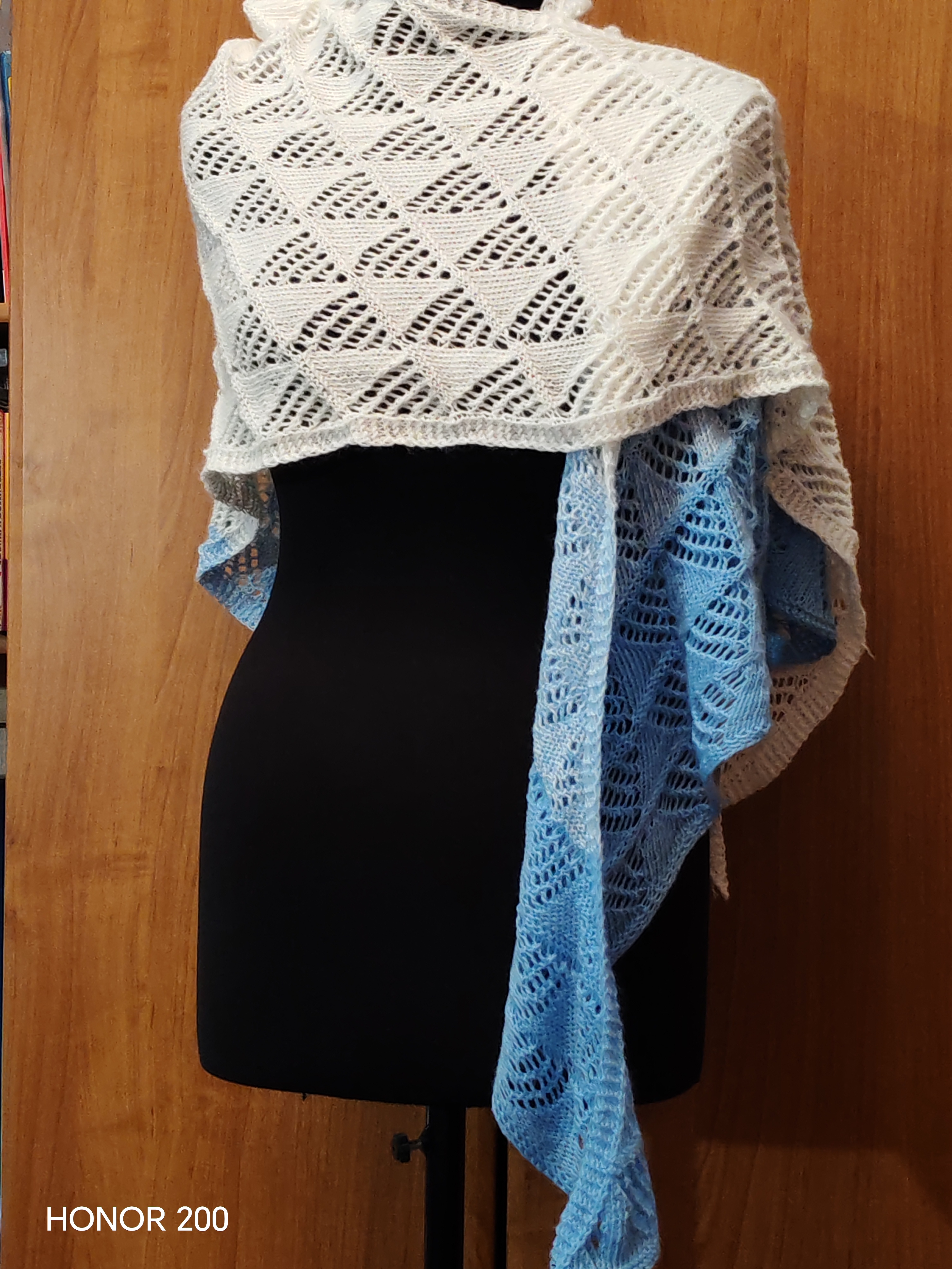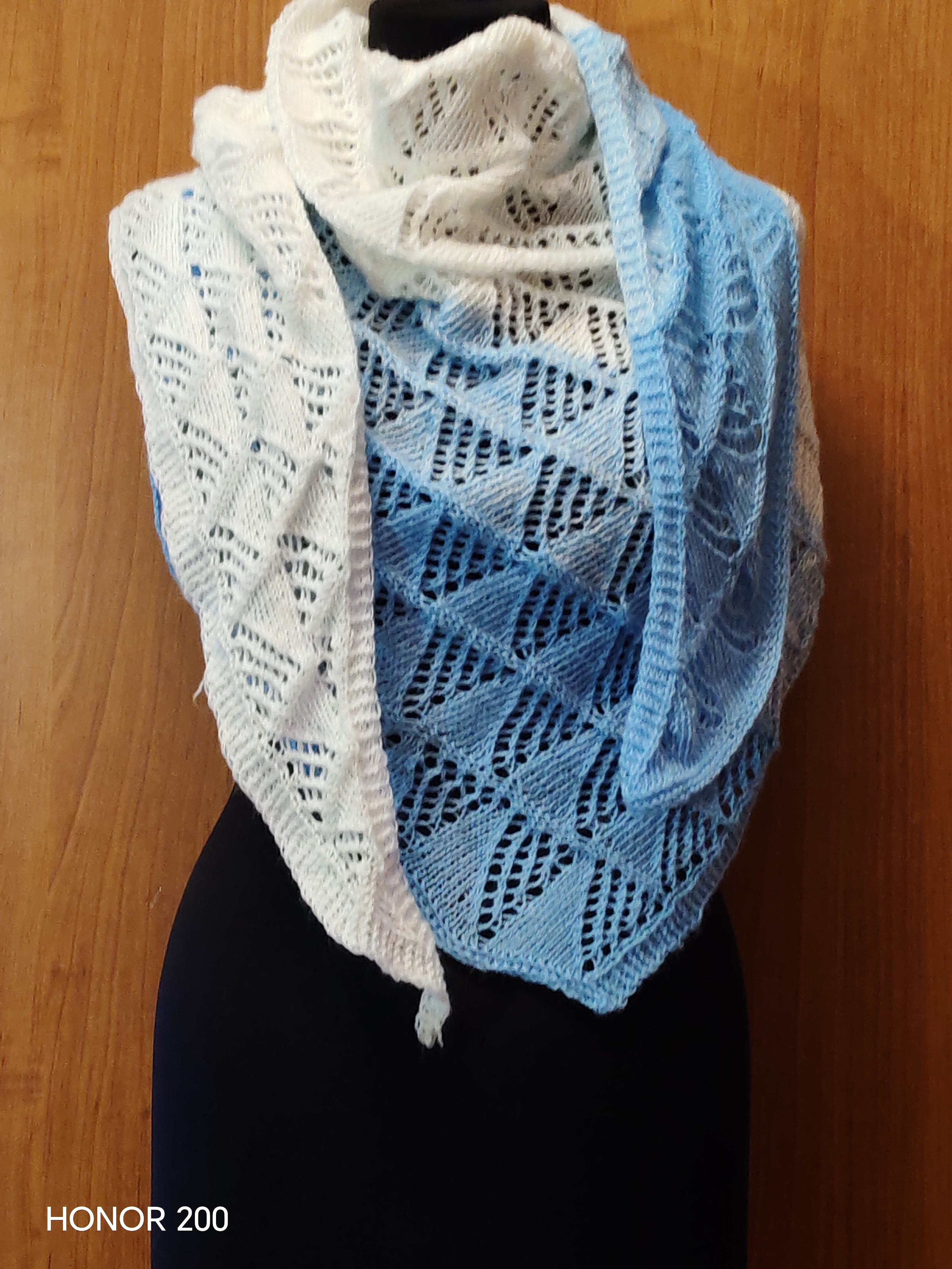 Добавьте образу легкости и изящества с нашей ажурной шалью ручной работы. Плавный переход от насыщенного небесно-голубого к безупречному белому напоминает морской бриз или ясное утреннее небо. Это не просто аксессуар, а ваш личный островок уюта.