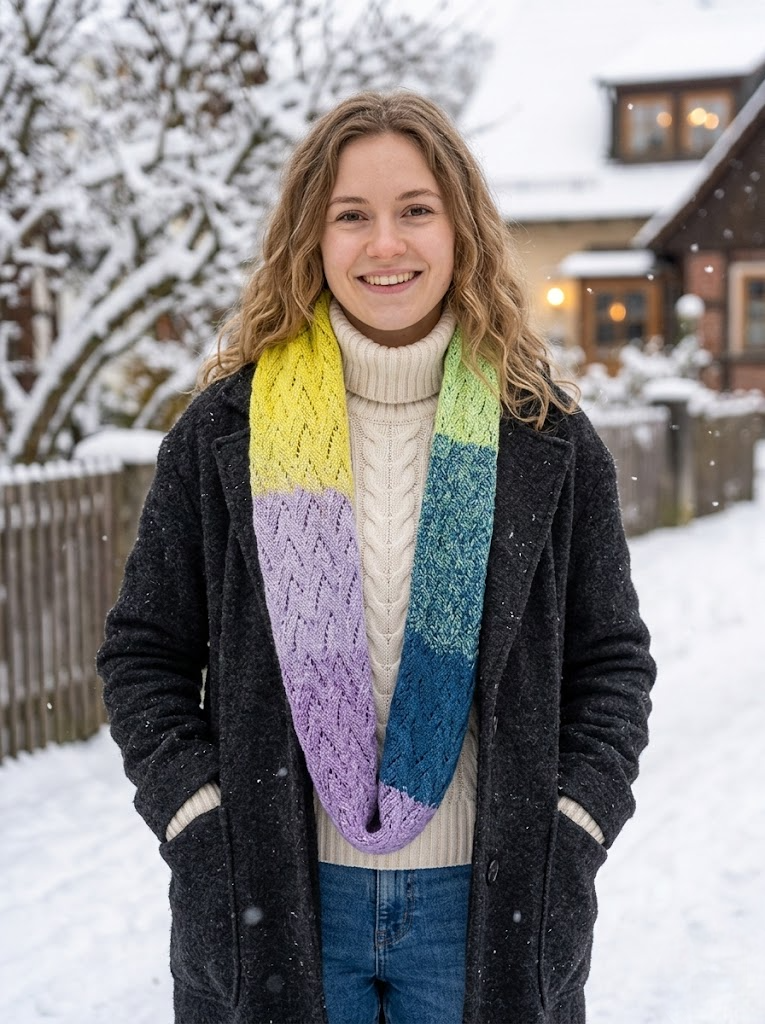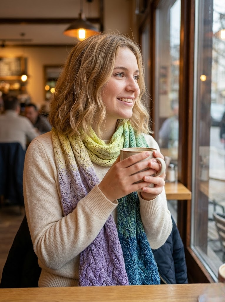 Цветовая гамма «Шалфей и черника» гармонично сочетается с любым гардеробом, добавляя изящества и легкости образу. Экологичность и долговечность материалов гарантируют, что шарф сохранит свои свойства и внешний вид даже после длительного использования. Это не просто аксессуар, а часть домашнего тепла, которая сопровождает вас в повседневной жизни, создавая атмосферу заботы и комфорта.
