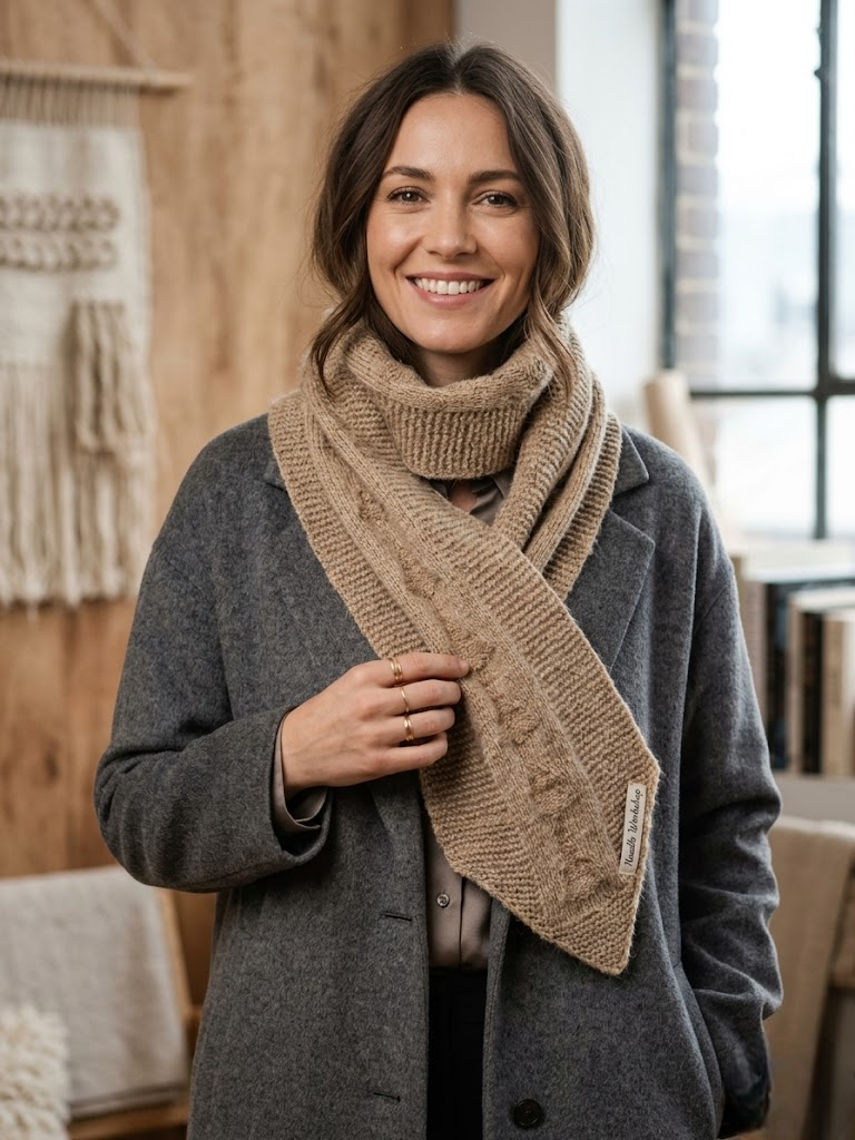 Этот шарф ручной работы создан из натуральной шерсти, вдохновлённый скандинавским минимализмом. Он дарит комфорт, н и подходит для повседневного использования в холодное время года.
