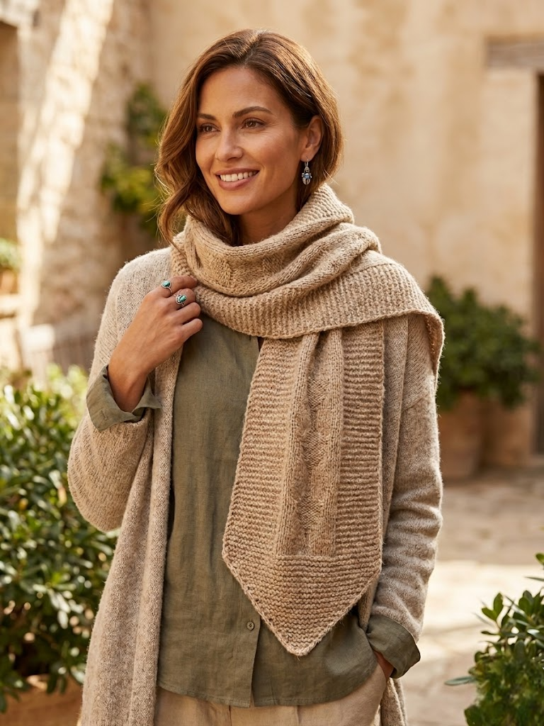 Когда хочется тепла, которое не просто согревает, но и рассказывает историю. Шарф «Еловая аллея» от NeedleWorkshop — это воплощение эстетики Quiet Luxury и природной гармонии. Центральный рельефный узор, напоминающий ритмичные ряды вековых елей, создает неповторимую фактуру, к которой хочется прикасаться.